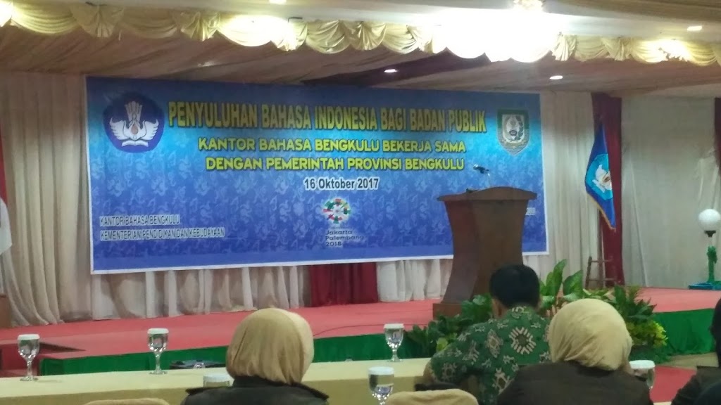 Kegiatan penyuluhan kebahasaan ini dilaksanakan selama satu hari pada tanggal 16 Oktober 2017 di Hotel Rafles City, Jalan Pariwisata Panjang, Bengkulu. Ketua Panitia, M.Yusuf, S.Ag. menuturkan bahwa kegiatan diikuti oleh 100 orang peserta utusan dari 35 instansi/badan publik yang dipilih. Kegiatan dibuka oleh Plt. Sekda Provinsi Bengkulu, H.Gotri Suyanto, S.E., M.Soc.Sc.. Narasumber kegiatan ini adalah Drs. Suladi, M.Pd. penyuluh bahasa Indonesia di Badan Pengembangan dan pembinaan Bahasa, Jakarta. Materi yang disampaikan adalah pengetahuan bahasa, bahasa surat dinas, dan bahasa laporan. Kayono, S.Pd., M.Hum., Kepala Kantor Bahasa Bengkulu, menyampaikan materi tentang strategi Kantor Bahasa Bengkulu dalam menyampaikan informasi kebahasaan dan kesastraan kepada msyarakat Bengkulu. (MY)